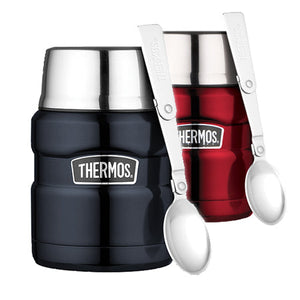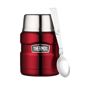 The Thermos King Vacuum Insulated Food Jar (470ml) is a sturdy, stainless steel container perfect for transporting hot or cold meals to work, school, or out and about.