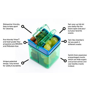 • Snack In The Box is a fun, reusable way to pack healthy snacks and protect them from getting crushed in your bag. The twin pop up lids let you easily flip the doors open and pour out your favourite snacks - perfect for kindy, school or the office.